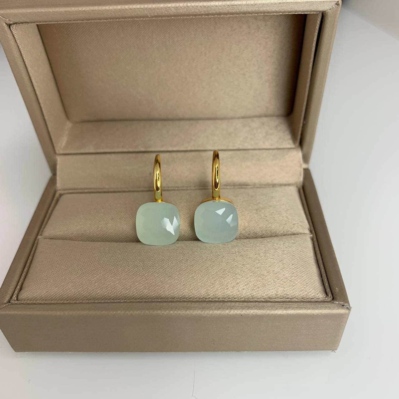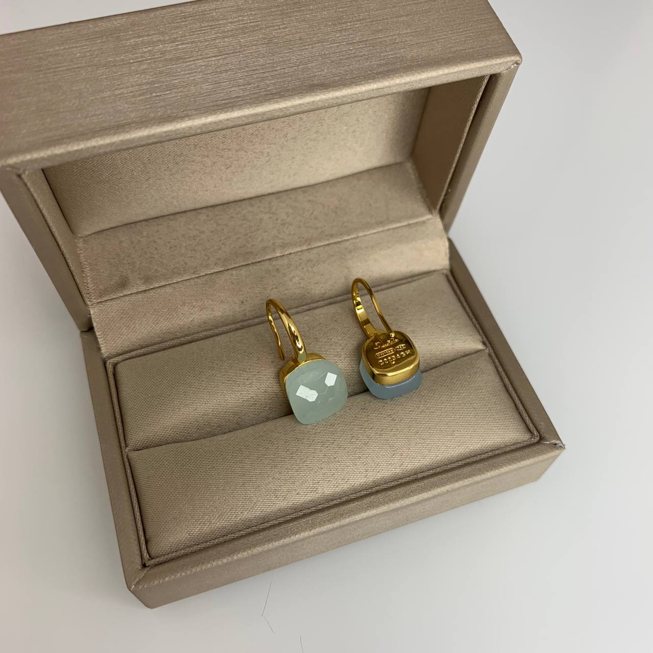 .Помеллато / Pomellato серьги позолота с одним квадратным камнем зеленого цвета